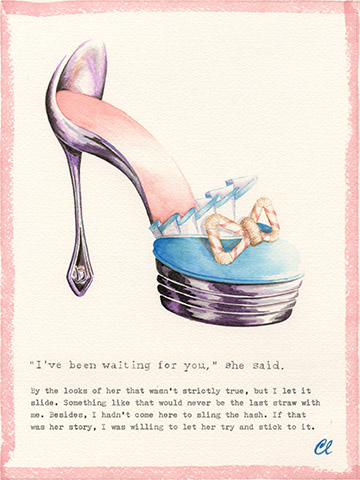 Every shoe tells a story — I'd like to personally thank everyone who ever wrote anything during the earlier to mid part of the last century. I love the use of metaphor to describe ordinary things — if you told a waitress you "hadn't come here to sling the hash", she knew just who you were and what you were talking about, and it tells the reader who she is, too.